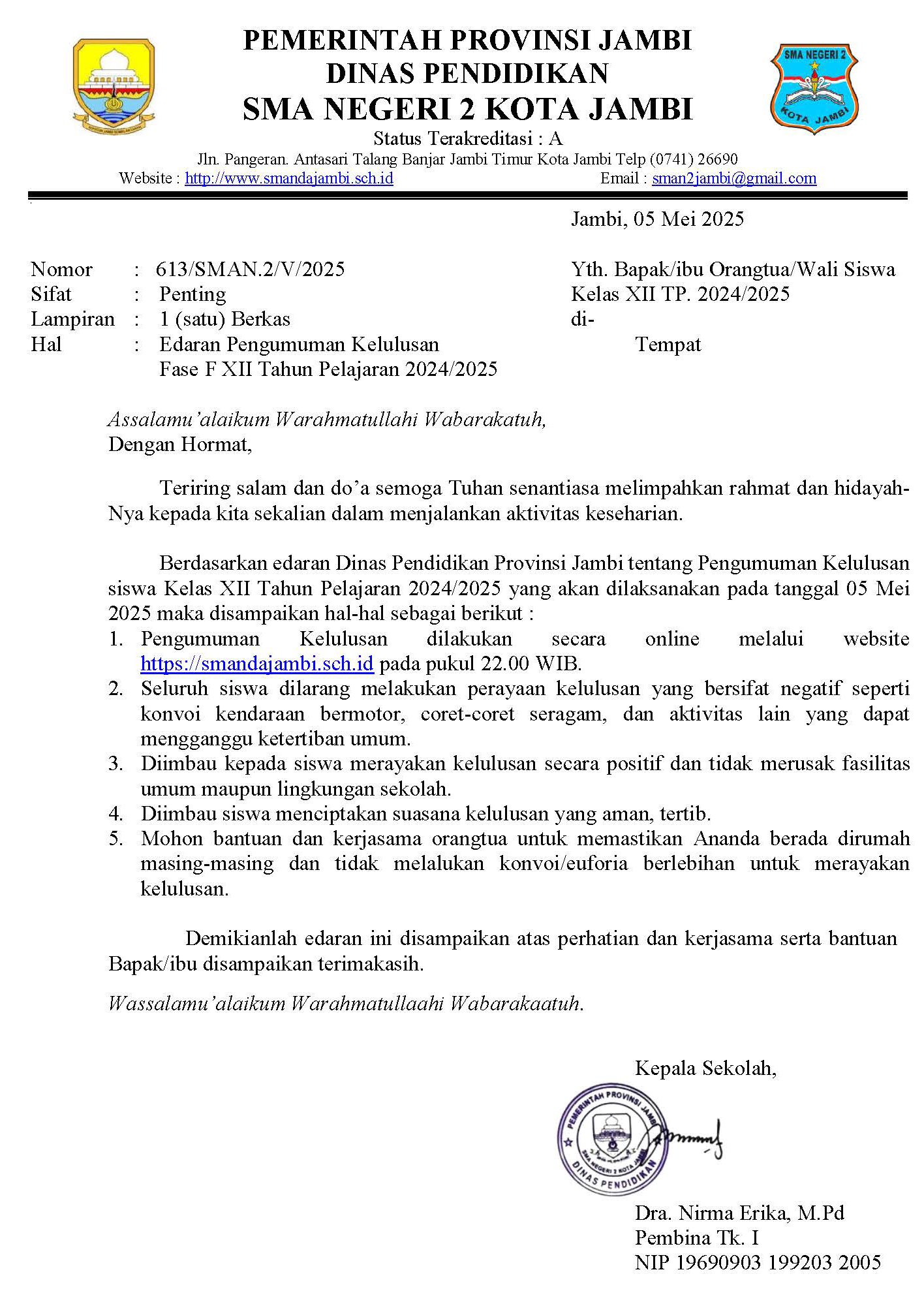 Pengumuman Kelulusan SMAN 2 Kota Jambi Tahun 2025 Akan dibuka / diumumkan