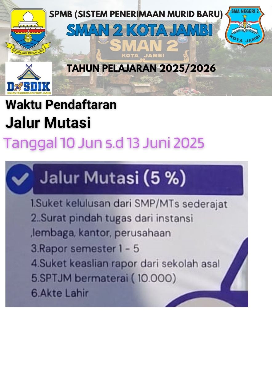 Link Hasil Seleksi SPMB SMAN 2 Kota Jambi (Sementara) Silahkan klik pada gambar atau link berikut. Jalur Domisilihttps://jambi.spmb.id/030001/seleksi/31050002 &nb...