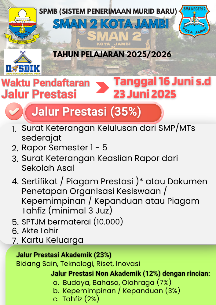 Link Hasil Seleksi SPMB SMAN 2 Kota Jambi (Sementara) Silahkan klik pada gambar atau link berikut. Jalur Domisilihttps://jambi.spmb.id/030001/seleksi/31050002 &nb...